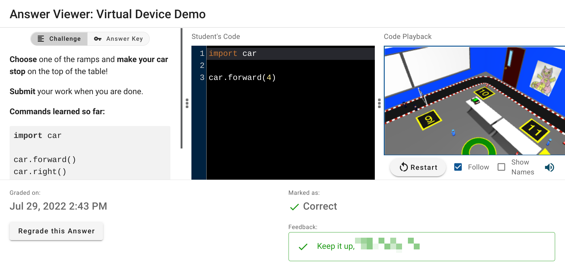 The auto-grading feature is definitely a timesaver and for manually graded lessons the availability of an answer key to review student submissions makes it easy to provide authentic and timely feedback! With some courses moving towards a 100% alignment to CSTA, and other common CS standards, AutoAuto is a great choice for 3rd-12th grades.