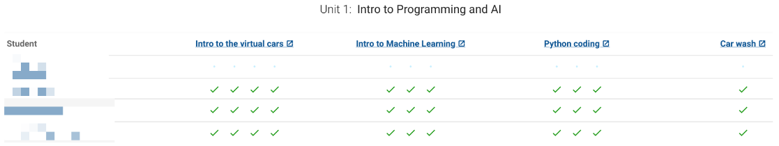 Students really enjoyed having the opportunity to work through each of the courses and learn about the coding behind the virtual cars. For my students, they were able to choose where to begin based on their interests and this made them quite happy. As soon as I showed students the dashboard and the units, a few said “I’m starting with computer vision because that looks awesome!”