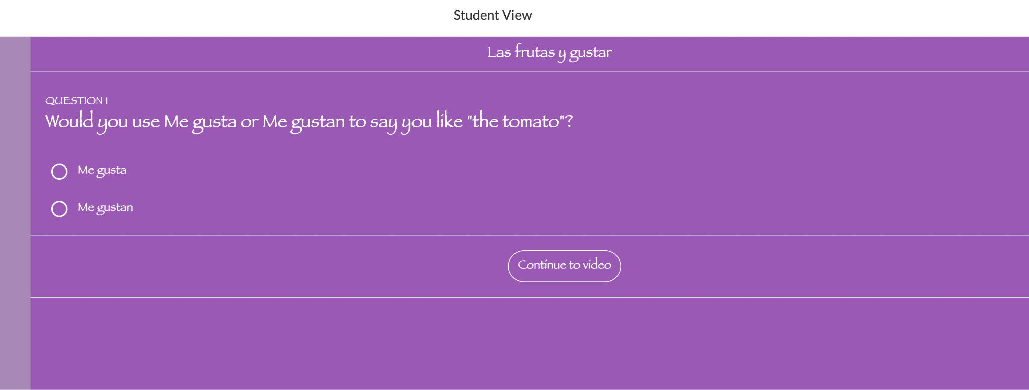 Creating interactive lessons for students is so easy! Check out this Spanish I video quiz on the verb “gustar” and “las frutas. “Adding in a few questions to check for student understanding and giving them an opportunity to learn at their pace and review as needed is why I love using the video quizzes in BookWidgets. Simply choose a video from Vimeo, YouTube,or one of your own created videos for your students that you may show in class. Rather than use these alone, instead, create a video quiz in BookWidgets for them to extend their learning beyond the classroom and for you to be able to understand where they are in the learning process!
