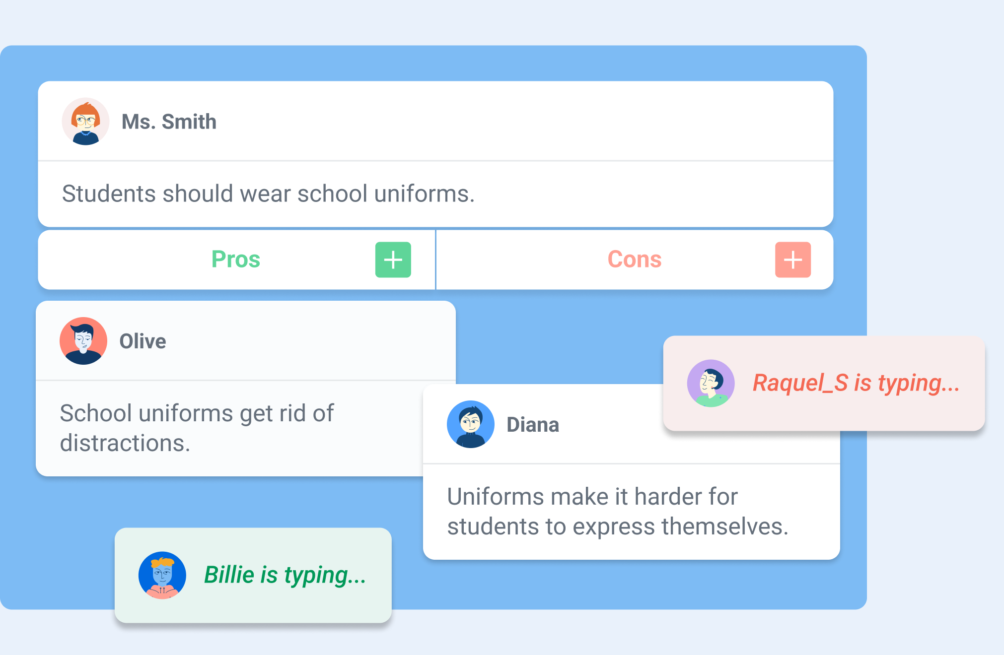Begin with a simple topic to familiarize students with the platform. Over time, introduce more complex discussions as students become comfortable.