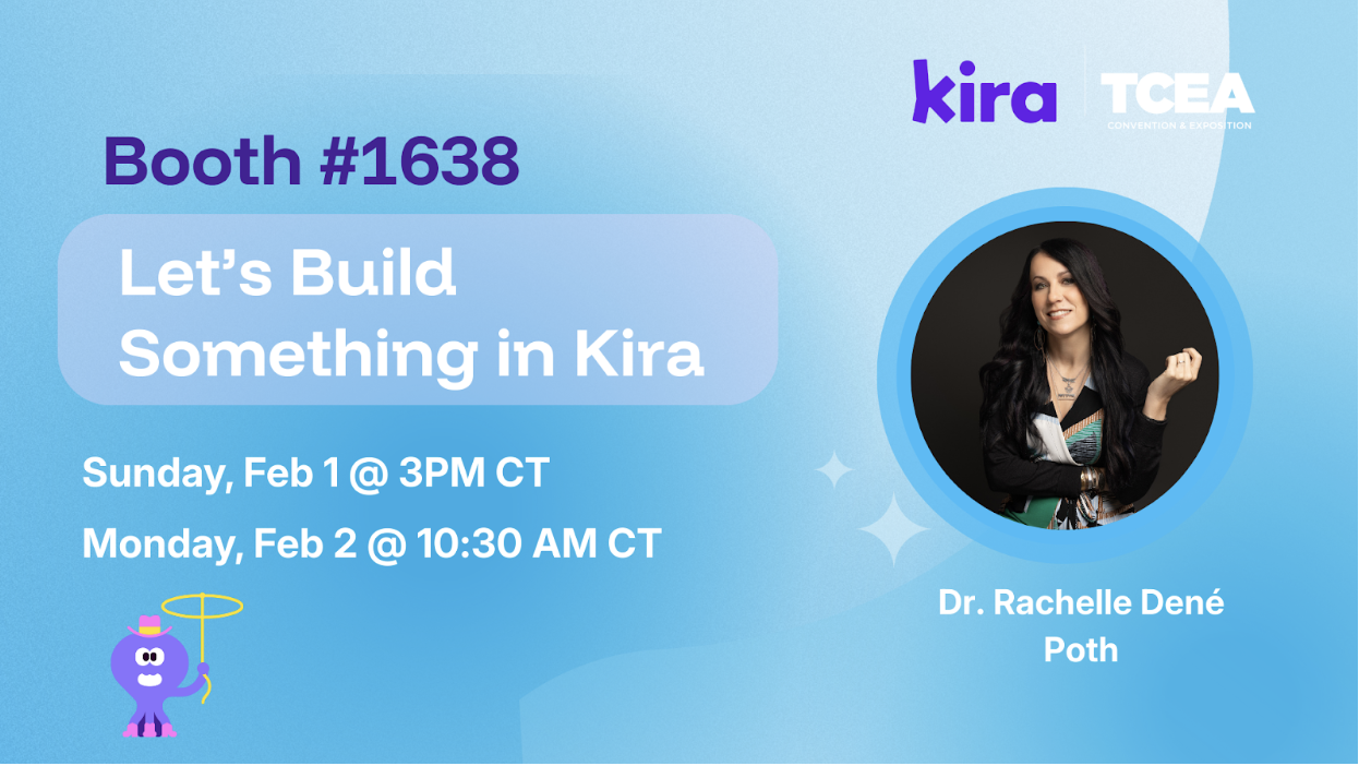 I’m excited to be at the Texas Computer Education Association Conference (TCEA), another fantastic conference where you’ll find me at the Kira booth, sharing ideas, running demos, and, most importantly, building with educators.