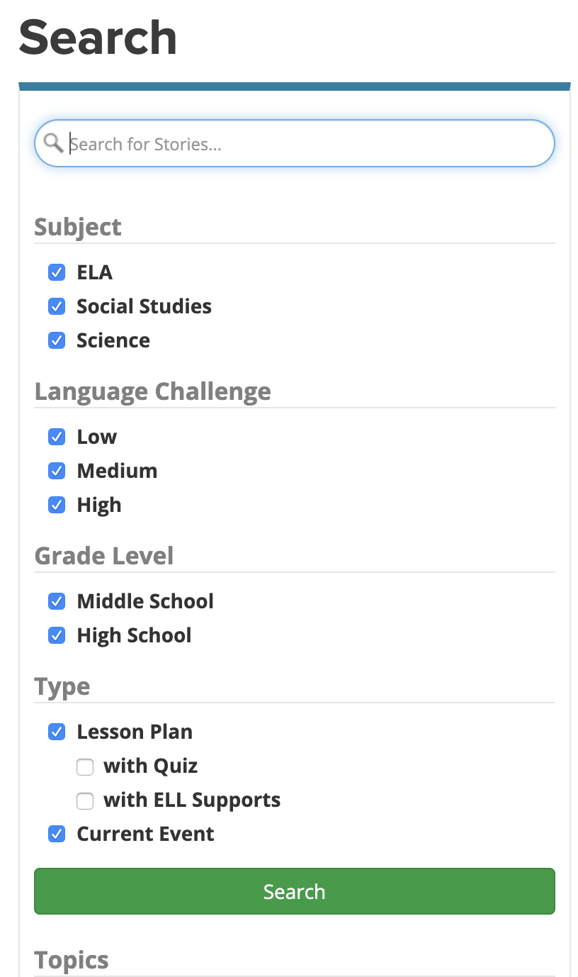 It is easy to locate Lessons, whether by selecting a content area, exploring all of the lessons available, or searching based on a specific word or current event. A great feature of Listenwise is that teachers can also search for lessons based on grade level, the level of language challenge, and even the type of resources (lesson plan or current event). Being able to locate resources quickly enables teachers to find something more personalized for students and their specific interests and needs.