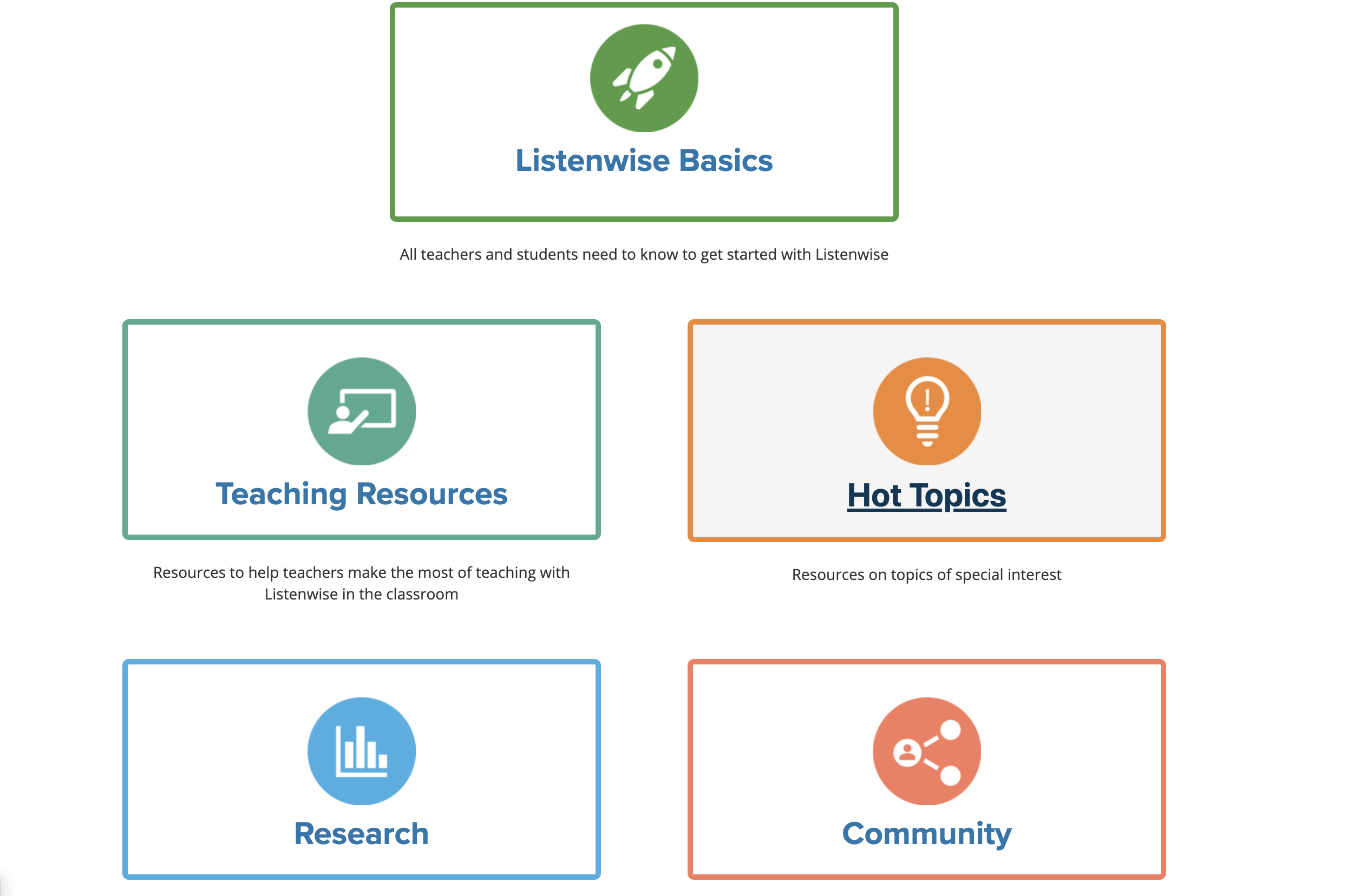 The first thing that I noticed about Listenwise is how easy it is to navigate in the platform. There is also a robust teacher support center which offers the basics for getting started, teaching resources, hot topics, and more support to get started with Listenwise.