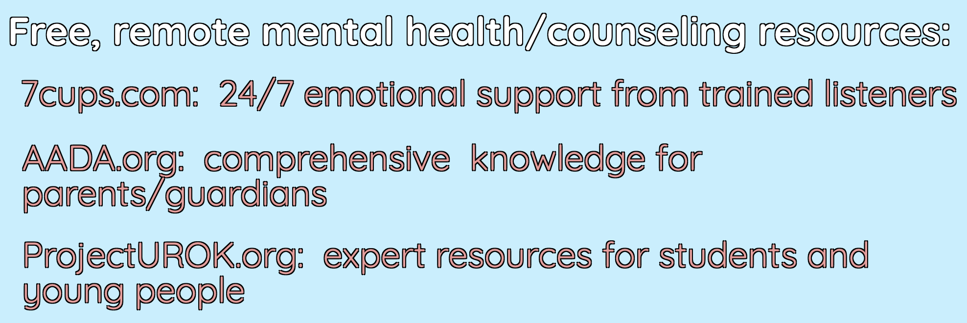 Another important aspect of the in-person school experience that’s missing in remote learning is the accessibility of health services for students. While in-person medical care can’t be provided to students using typical school resources, it’s especially important during the COVID-19 pandemic to provide adequate mental health resources for students of all ages.
