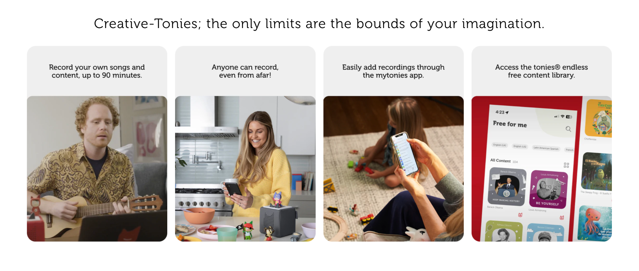 Creative Tonies provide even more opportunities for personalization. Parents can record bedtime stories, and teachers can create custom lessons or messages for their students.