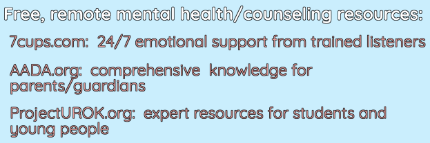 You likely don’t have much direct control over your administrators’ use of health resources. But if you’re able, do what you can to advocate for mental health resources to be made available for your students. This might involve bringing several educators together in order to work for what you believe is best for your students, speaking with parents in order to focus the school’s entire community on students’ well-being, or doing your own research on accessible mental health resources online. This terrific list of accessible remote mental health resources is a great place to start.