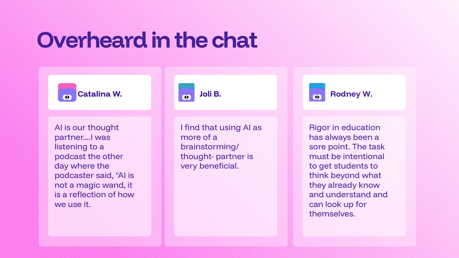 When teachers see the time they can save and then shift to students or colleague interactions, they’re more willing to explore deeper integrations of AI into their practice.