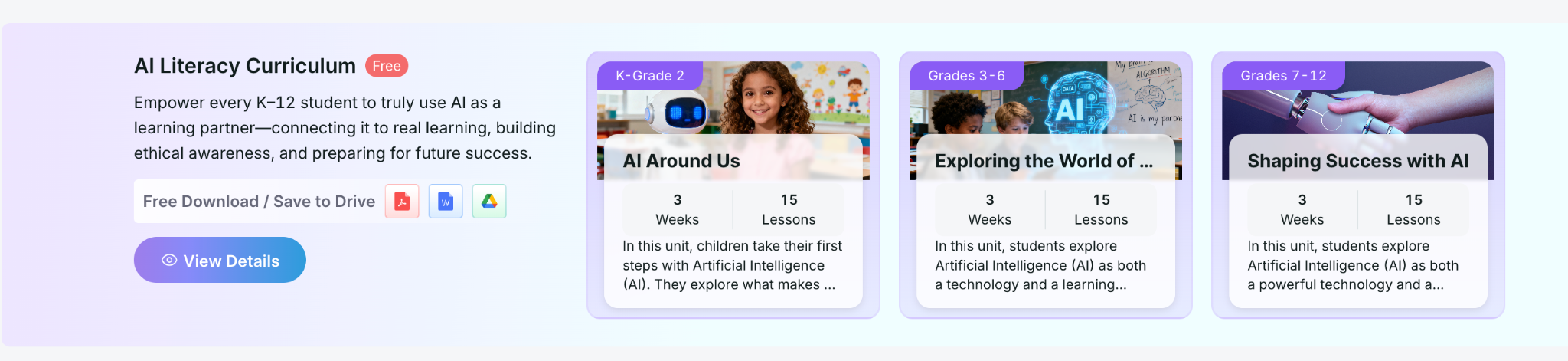 The AI Tutor is subject-agnostic and works across K–12 courses, math included. It’s available to both teachers and students, and it’s been a game-changer for first-time teachers who lean on it to deepen their own understanding while teaching. The message is clear: AI as a teaching buddy, not a replacement.